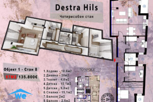 Нов Четирисобен стан 97м2 Дестра Хилс