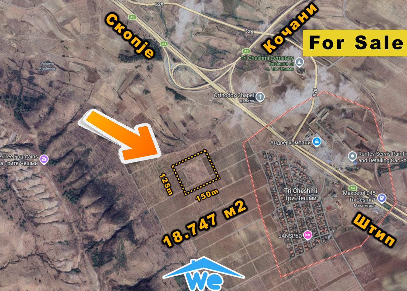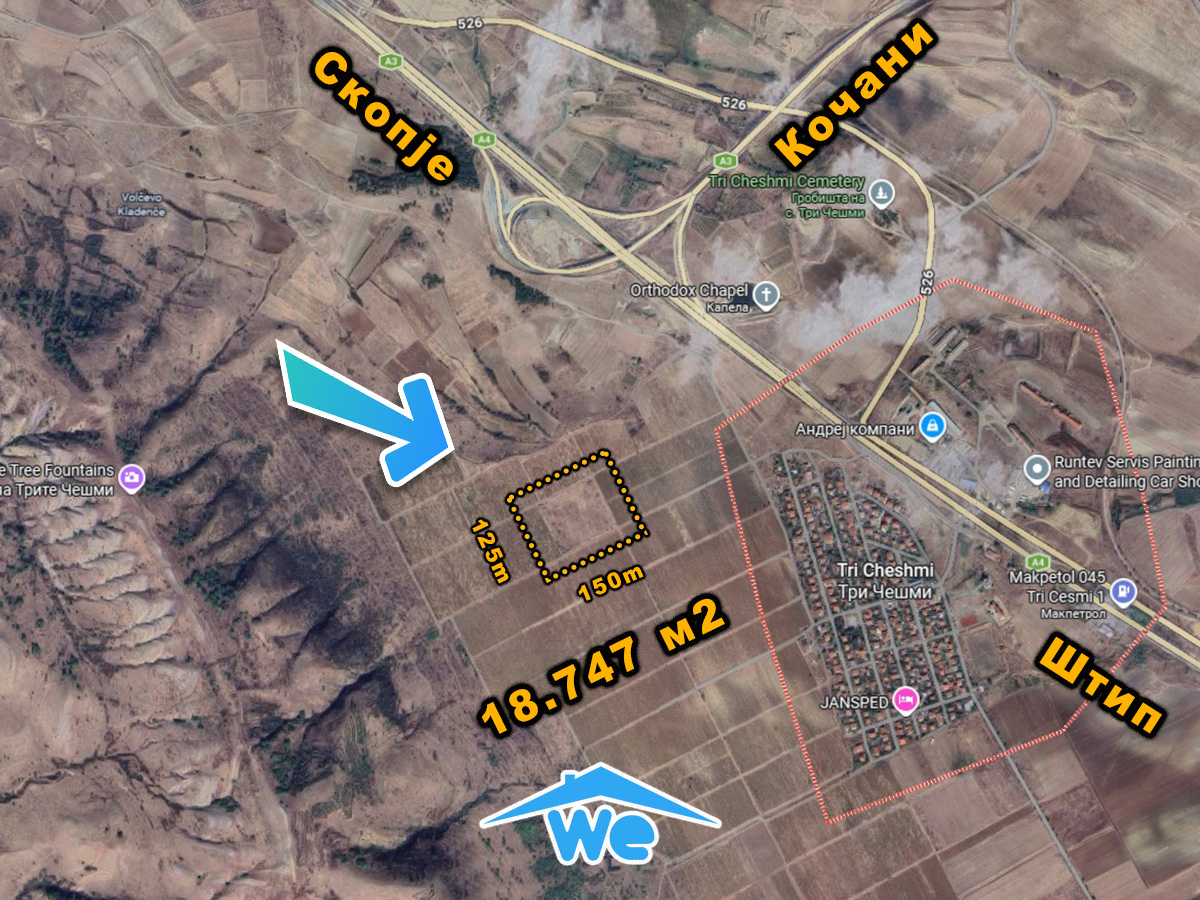 Се продава земјоделско земјиште Плодна Нива во Три Чешми МВ Стари лозја со површина од 18747м2. Нивата е со димензии 120 метри на 150 метри, лесен пристап веднаш до патот и на само 450 метри од асвалтниот пат и куќите во Нас. Три Чешми или на само 1000 метри од клучката Автопатот Штип – Скопје и Експресниот пат Штип – Кочани. Парцелата е лесно достапна, погодна за повеќе намени и култури, исчистена од сите претходни култури и столбови. Чист имотен лист, може да се преведе веднаш. Цената на Нивата е 5€/м2 или 93735€